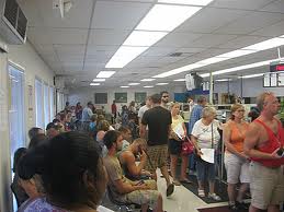 Seeing all this makes me grateful to live in a very rural county (although I live within 15 minutes of Ft. Worth, I actually live in the county just outside the city). Our DMV rarely takes more than 30 minutes to wait in line and process the entire line and get out and be done with the whole process. I'm not even planning on renewing my license online- I may as well just go to the DMV and have it done! Sad, I'm probably in one of the few places where it's like that! Our DMV probably only has about 15 parking places out front, it's that small. I've never had more than 6 or 7 in front of me in line. Thank you, thank you, thank you, rural county, for being so DMV friendly.