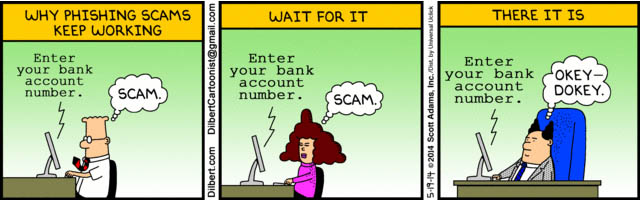 ReplyDeletepart of my job is reading the crime reports and getting them submitted to the state and fbi. i am always amazed by the number of folks (young and old) that get scammed by fake jobs (depositing a check into your account, then issuing part of the amount back to someone else), fake auto sales (don't ever pay with amazon gift cards, people!) and the fake acct stuff as you've described. *sigh*